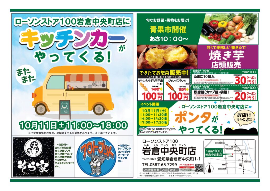 「ローソンストア100岩倉中央町店」の駐車場にまたまたキッチンカーが登場。