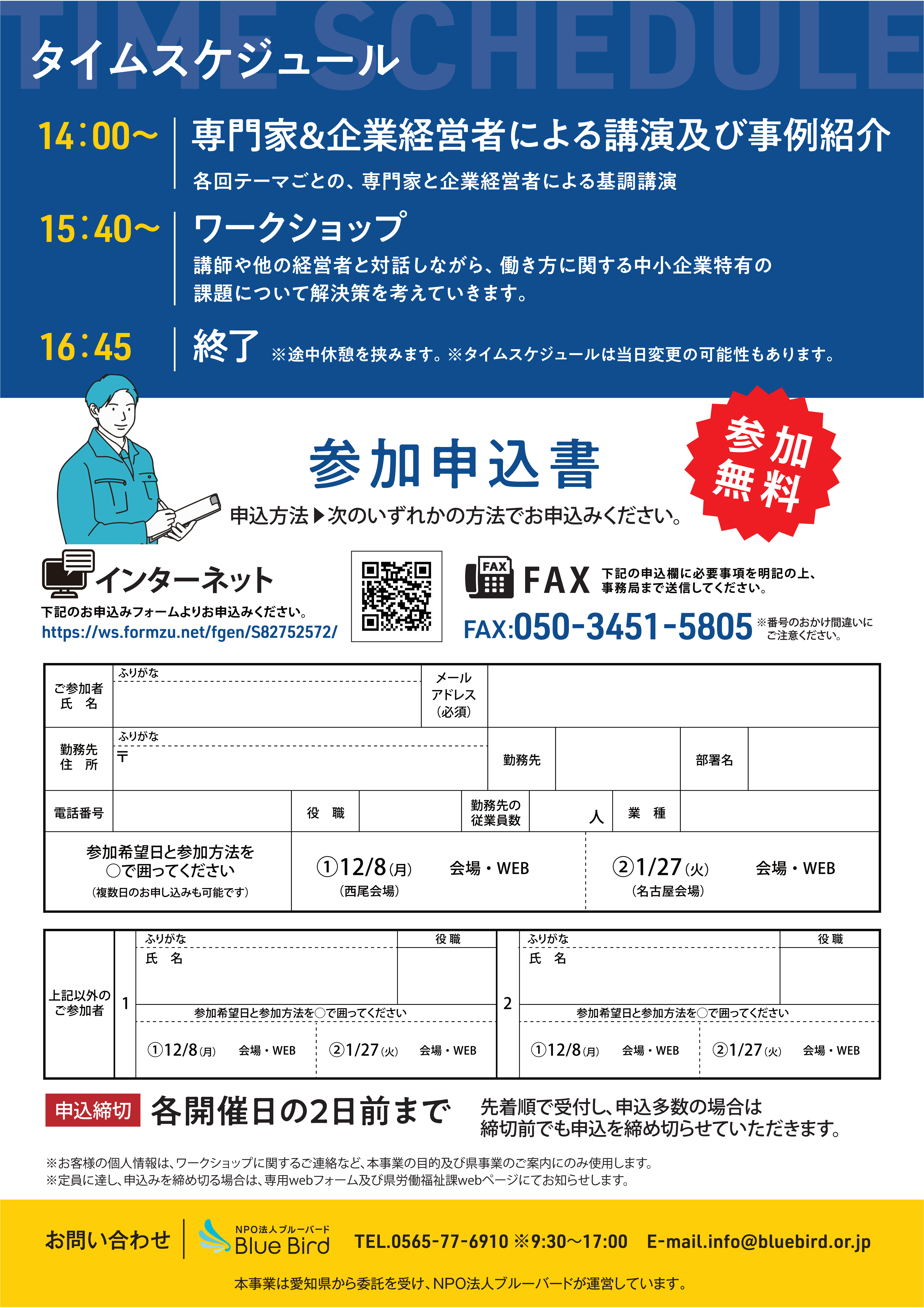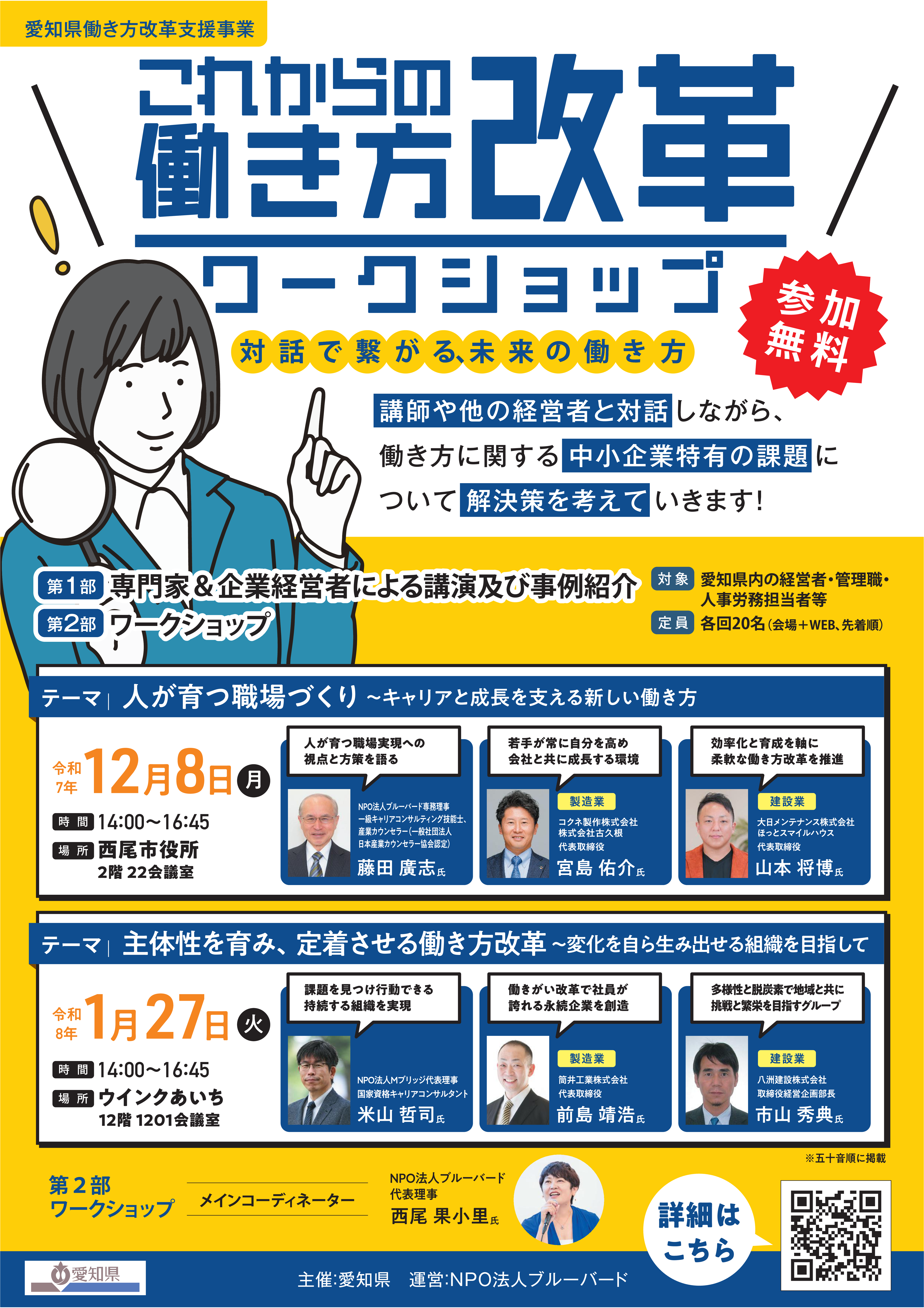参加費は無料ですので、県内企業の経営者、管理職、人事労務担当者等の皆様は、是非御参加ください。ワークショップの詳細・参加申し込みは、愛知県ホームページをご覧ください。